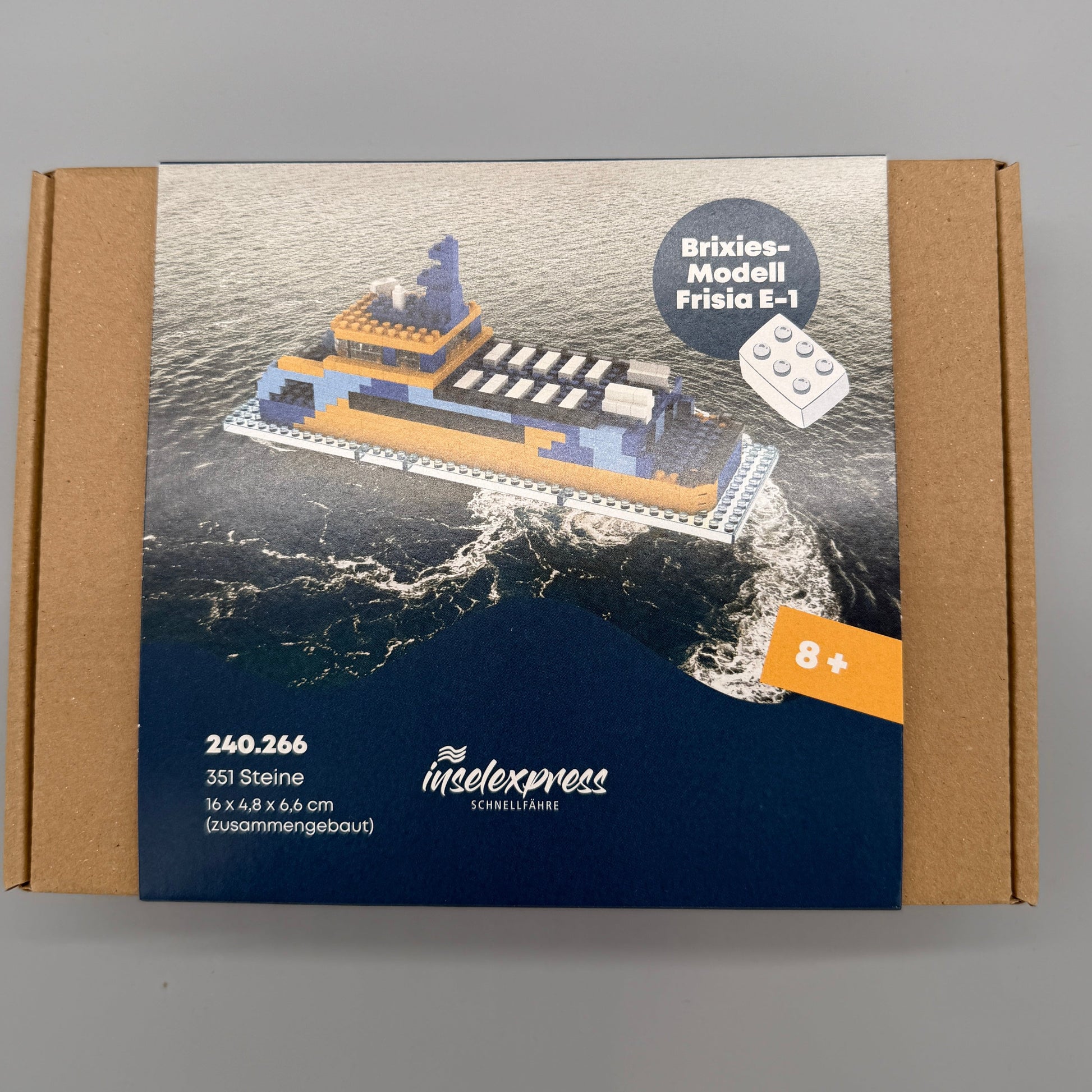 Hol dir die Faszination der Nordsee nach Hause! Mit dem detailreichen Brixies-Modell der Frisia E-1 baust du die bekannte Schnellfähre Stein für Stein nach.