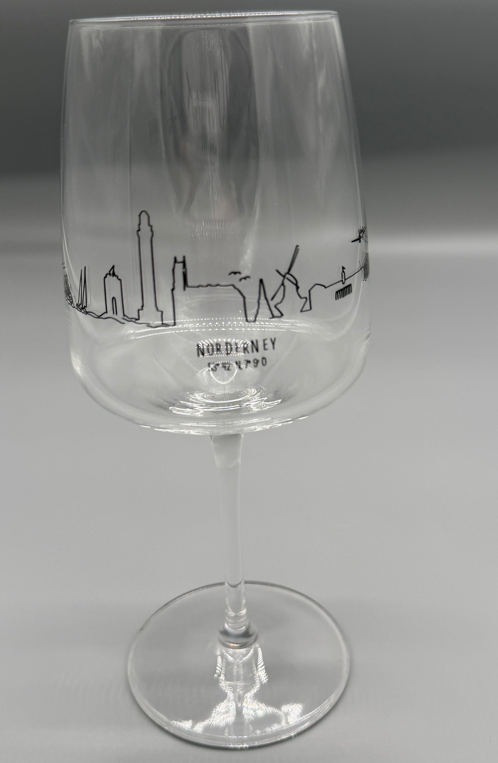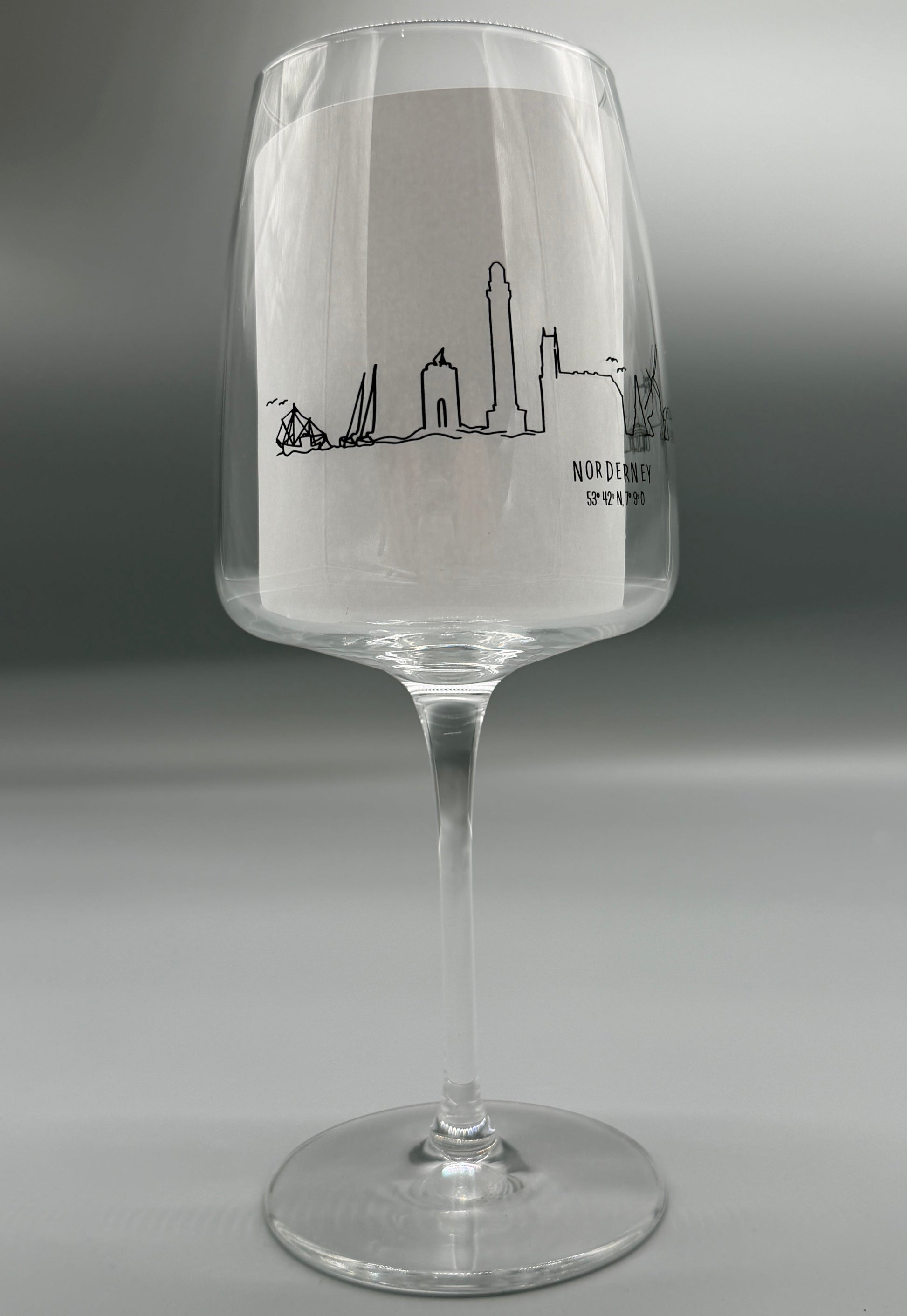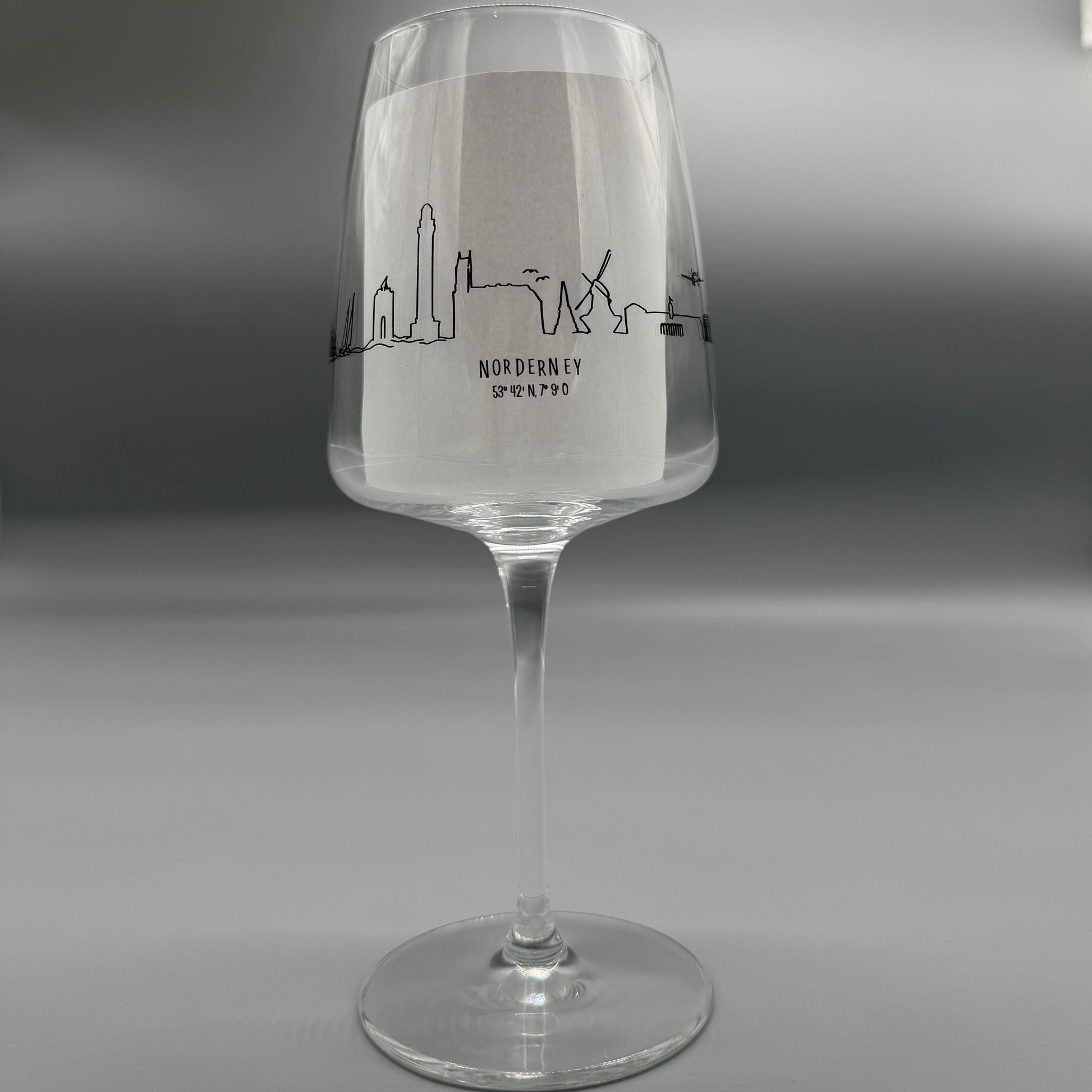 Dieses elegante Weinglas trägt die feine Silhouette von Norderney – inklusive markanter Wahrzeichen wie Leuchtturm und Windmühle. Ergänzt wird das Design durch die Koordinaten der Insel, die deinem Glas einen authentischen maritimen Charakter verleihen.